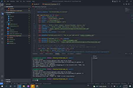 - Open the terminal and type bundler or bundle install.