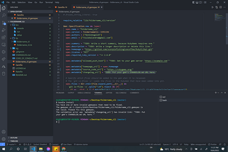 - Type Bundle Gem foldername_cli or folder name