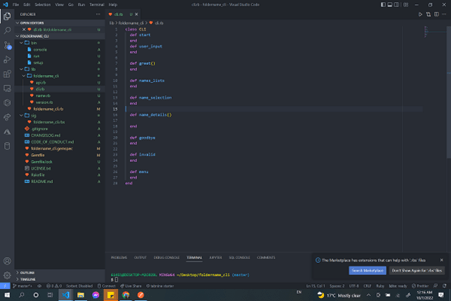- Then open the foldername_cli file within lib folder. The foldername_cli will be like the equivalent to the route.rb which was within the config folder in rails.